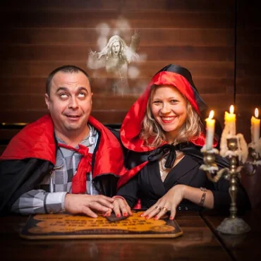 Представьте: к вам приезжает ведущий с реквизитом и костюмами, и гости перевоплощаются в героев фильма. Но если в фильме всё известно заранее, то здесь нажали «стоп» и сказали: «Дальше действуйте вы».