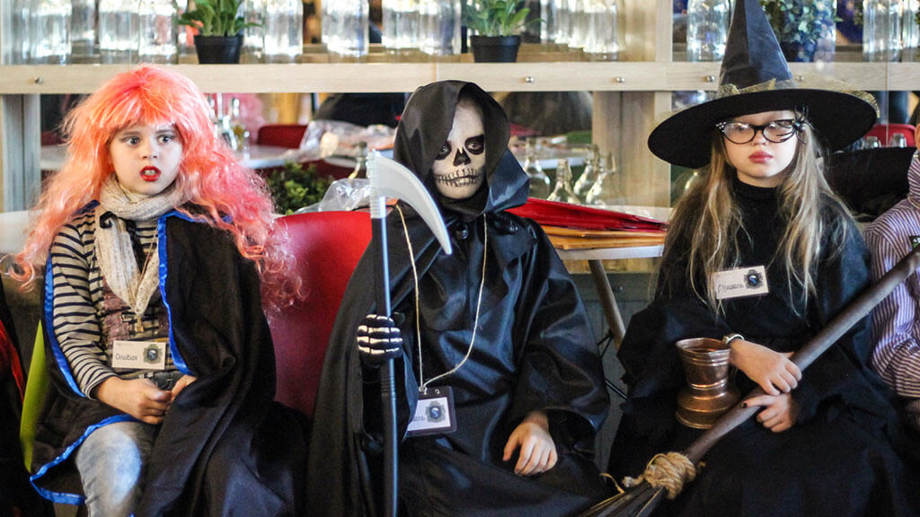 Оформим и дополним антуражем в стиле сценария площадку для праздника. Появится полное ощущение, что действие происходит в магической школе, на таинственном острове или в старом доме с привидениями!