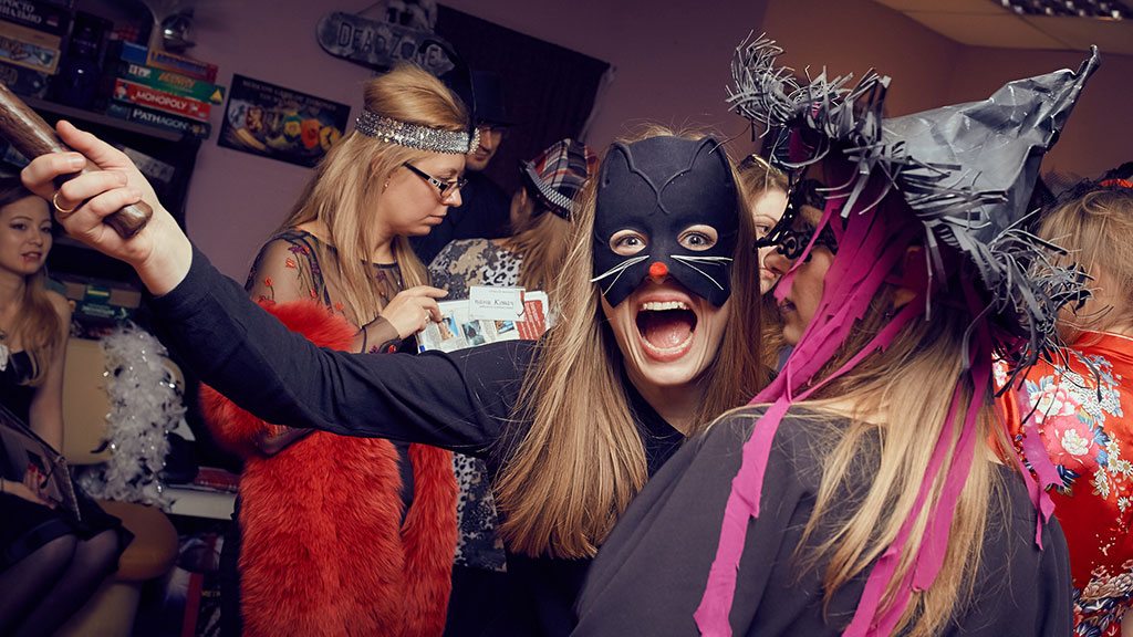 Если вы организуете праздник заранее, то очень крутой вариант для Хэллоуина — арендовать коттедж или помещение на турбазе. Например, действие квестории «Приют для убийцы» как раз происходит в заснеженном отеле, отрезанном от цивилизации. Так что будет полное погружение. Красота природы, приятная компания и будоражащая игра — что может быть лучше?