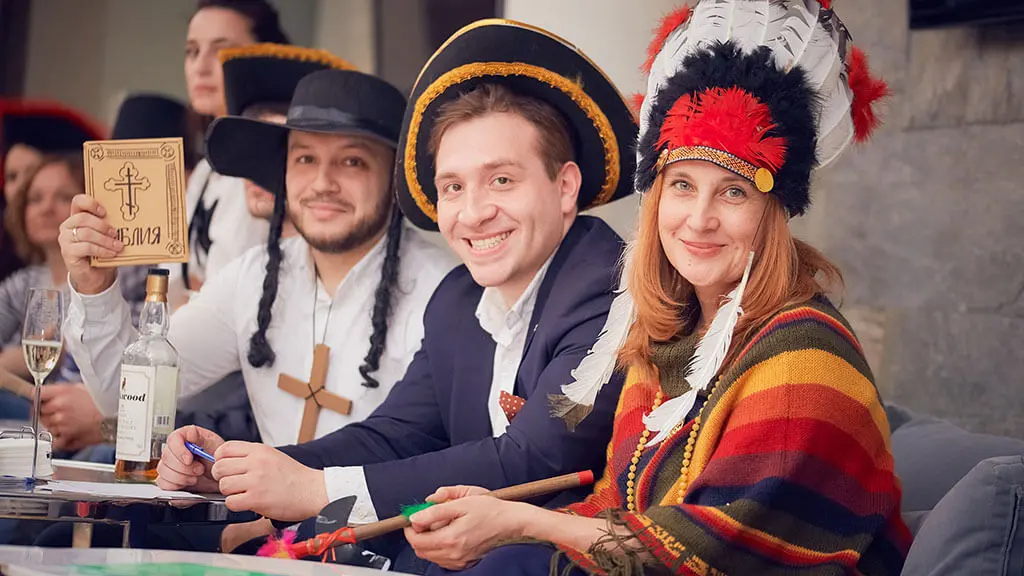 Тимбилдинг квест «Завещание Флинта»: На острове туземка с улыбкой кокетки, лорд с планами захвата власти и священник с библией уговаривают крысу-пирата раскрыть местоположение сокровищ, угрожая поджарить его на костре.